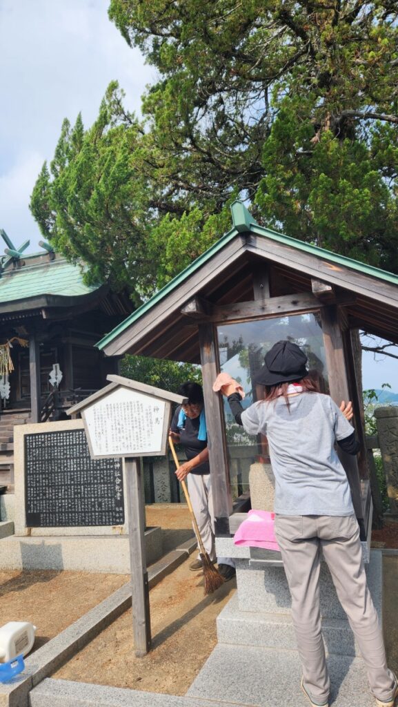 神馬像の掃除 これまでの活動 X Facebook はてブ Pocket LINE コピー 2025.08.28 令和7年8月24日 年に一度の富丘八幡神社丹波佐吉神馬像の掃除です。アクリル板がなかなかきれいになりませんが、お掃除をすると気分もスッキリ! 暑い中でしたが、神社にお参りの方も多かったです。